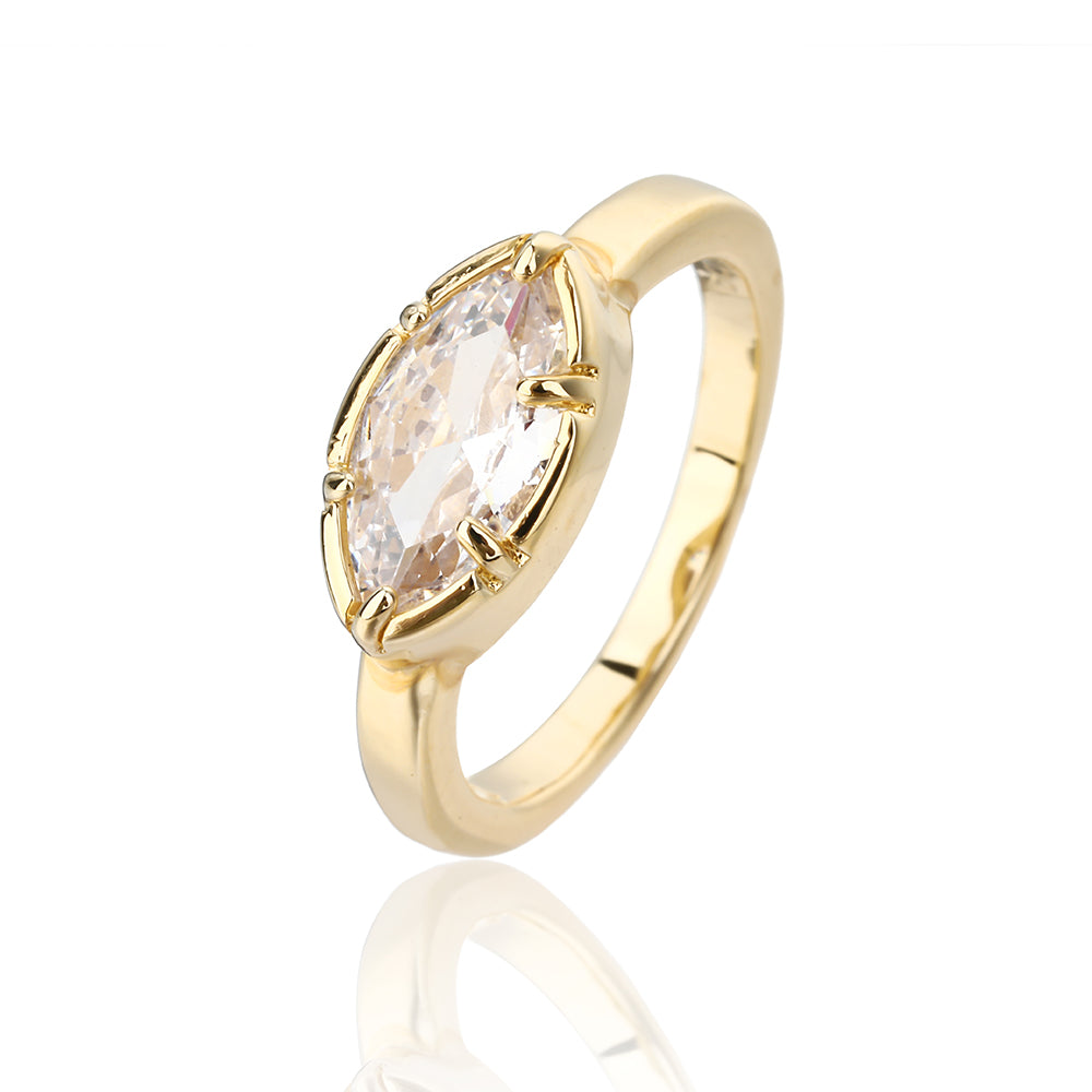 הטבעת עשויה פליז בציפוי זהב 14K איכותי (2 מיקרון), ומשובצת באבן זירקון בחיתוך ייחודי המעניק לה נוכחות אצילית ומרשימה.