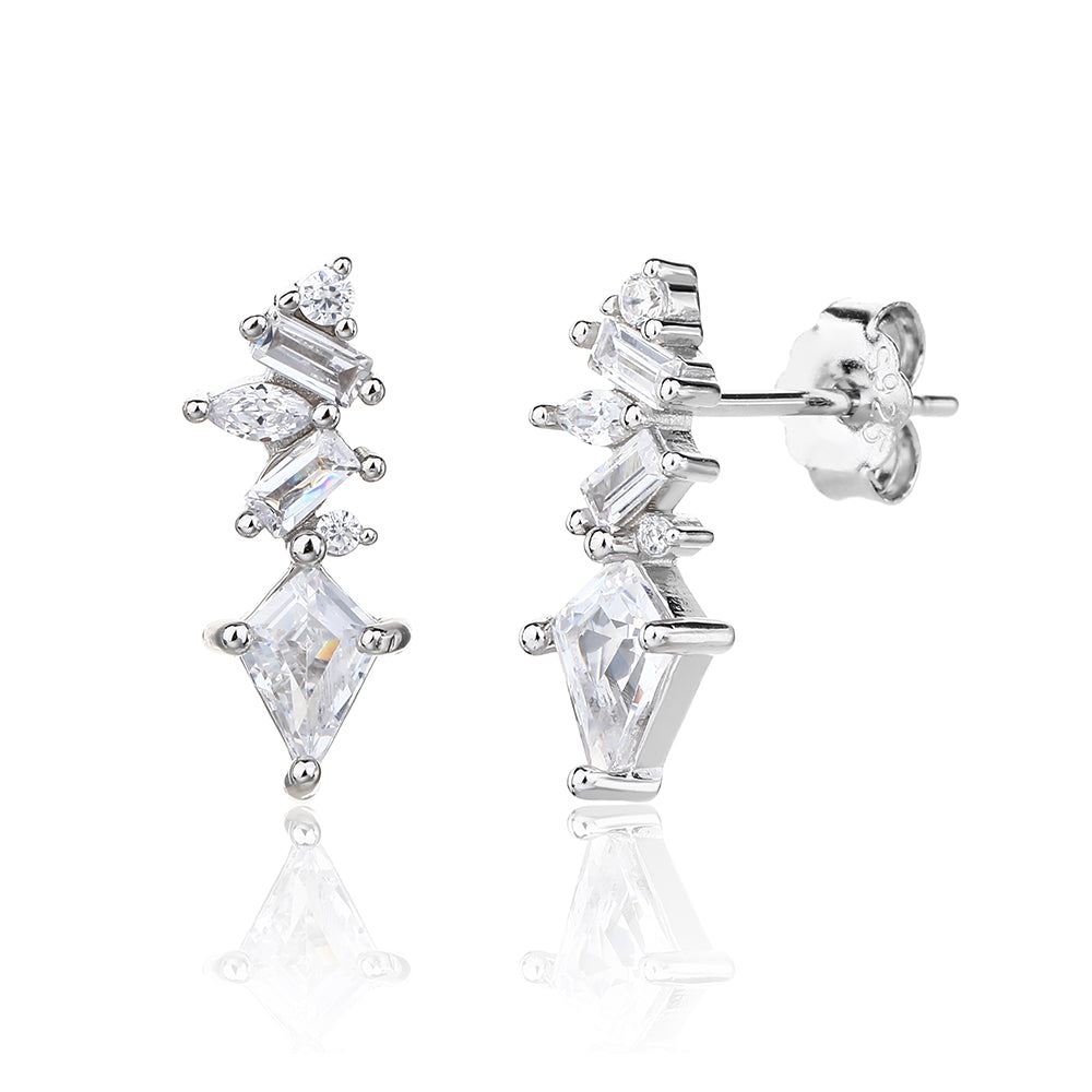 העגילים עשויים כסף אמיתי 925, ומציגים שילוב הרמוני של אבנים בגדלים וצורות שונות - היוצרים מראה מלכותי, זוהר ועם זאת מלא טבעיות.