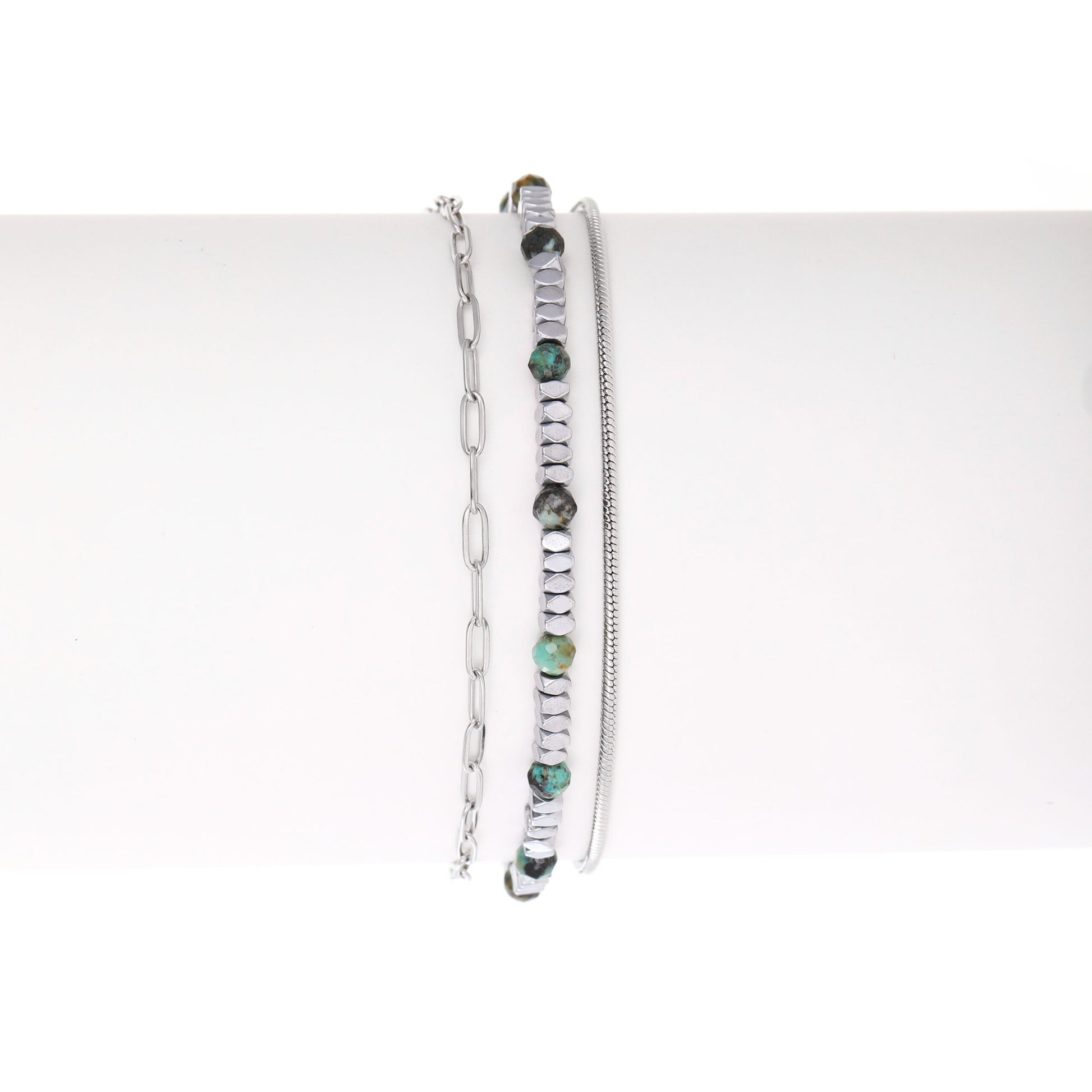 סט צמידים "כוכבי הדרך" לגבר עשויים פלדת אל חלד המדמים את מראה הכוכבים בלילה המאירים לנו את הדרך ומזכירים לנו את הכוח שטמון בכל אחד מאיתנו. אורך הצמיד 17.5+5 ס"מ.