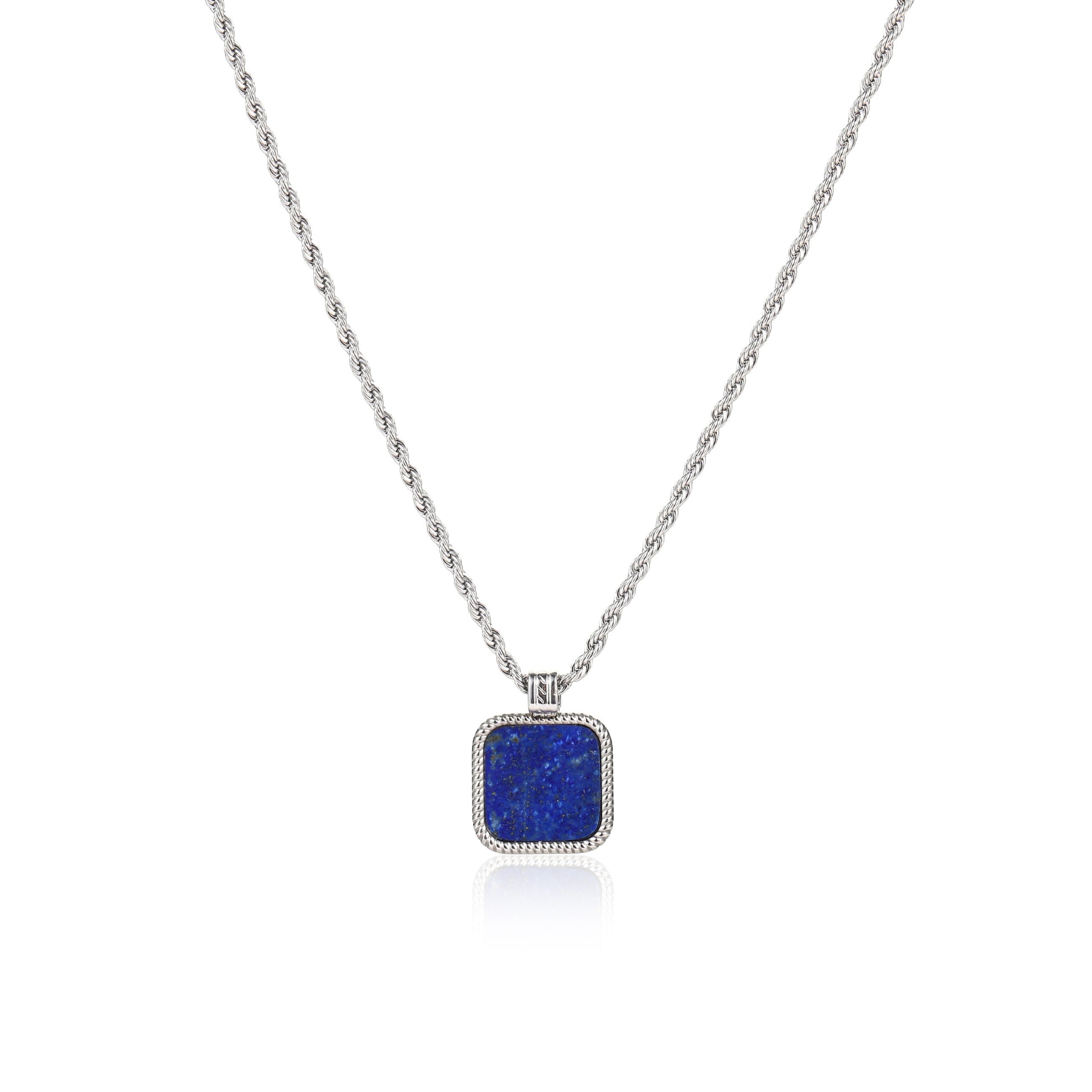 שרשרת העוצמה בצבע כחול לגבר עשויה פלדת אל חלד. האבן המרובעת הממוסגרת בכסף מסמלת את העוצמה הטמונה בכל אחד מאיתנו. אורך השרשרת 60+10 ס"מ.