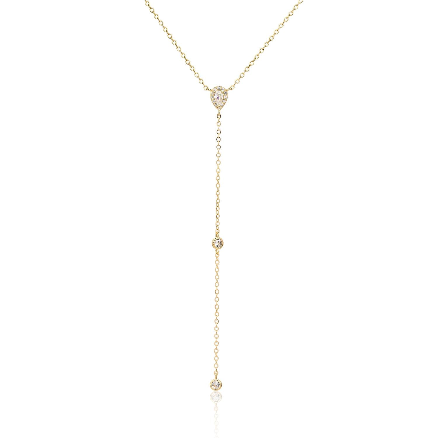 שרשרת "טיפת הגשם" היא שרשרת עניבה נופלת בעיצוב מלא רוך והרמוניה - תליון טיפה הפוך ומשובץ זרקונים מנצנצים, כשמעליו שתי נקודות עדינות במרווחים שווים, ממש כמו טיפות גשם שנופלות ברצף. עשויה פליז בציפוי זהב 14K איכותי (2 מיקרון), ומשדרגת כל הופעה באלגנטיות טבעית ועדינה. אורך השרשרת: 40+5 ס"מ